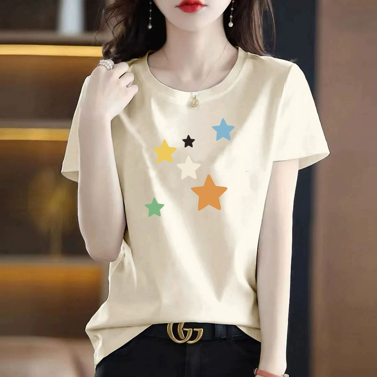 2024 صيف طباعة الأكمام القصيرة البيضاء