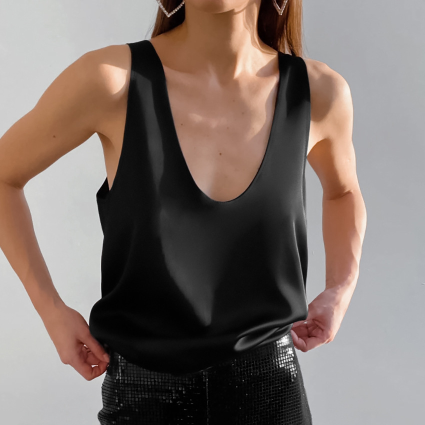 2024 Summer new pure color satin U-neck sleeveless T-shirt European and American all-match street style vest wholesale women
