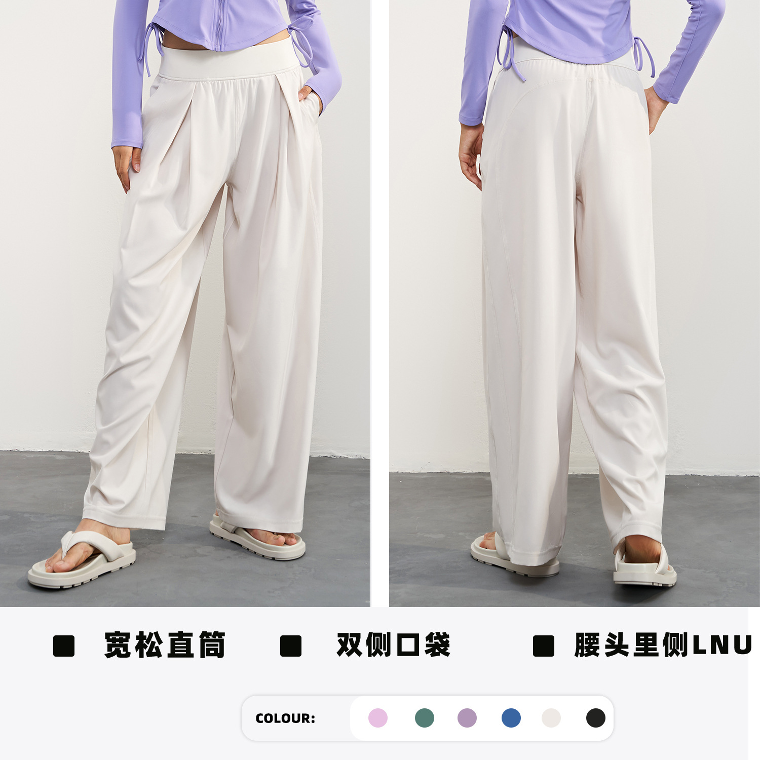 2024 Summer New Quick-drying Pants Straight Slimming Sports Fitness Yoga Pants Woven Cool Loose Yoga Clothes Women