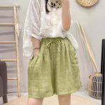 2024 Summer New Ramie Shorts Women's Thin Loose Solid Color Artistic Fresh Drawstring Loose Casual Pants