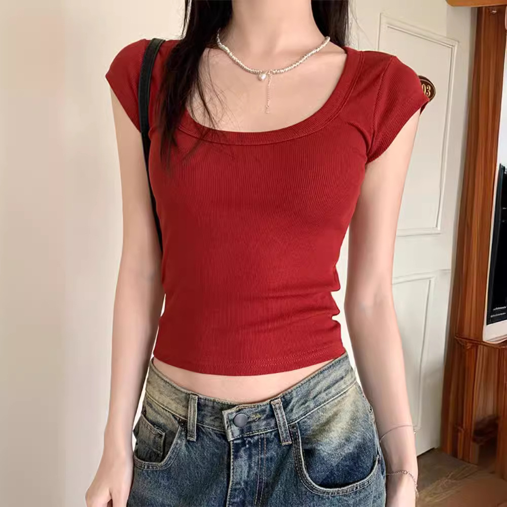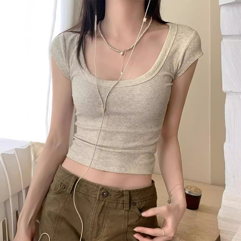 | nameOriginal | 2024 Summer New Stretch Thread Slim-fit Slim-fit Slimming Short Navel-exposed T-shirt Women's Casual U-collar Short-sleeved Top Trendy |