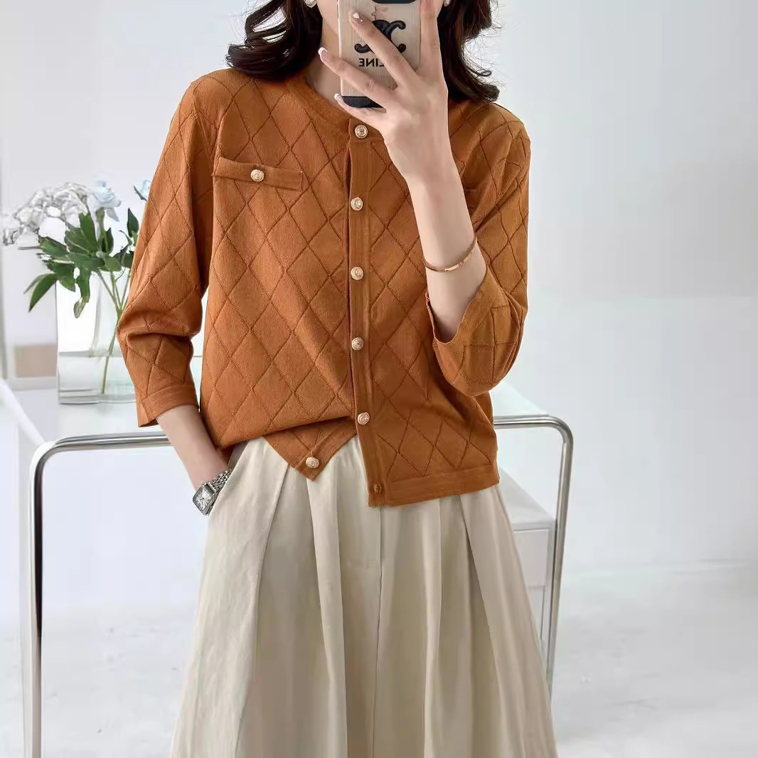 2024 صيف جديد نمط شانيل نمط جولة الرقبة الفرنسية قصيرة الأكمام محبوك أعلى 9819