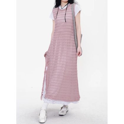 | nameOriginal | 2024 Summer New Style Lazy Style Split Round Neck Sleeveless Long Korean Style All-match Hollow-out Knitted Stacked Sundress |