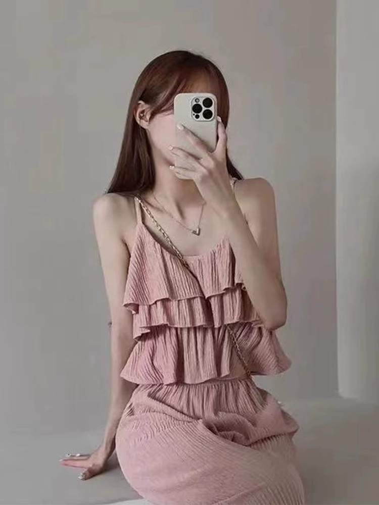 | nameOriginal | 2024 summer new style ruffled short suspender tops women's high waist loose casual straight wide leg pants two-piece set |