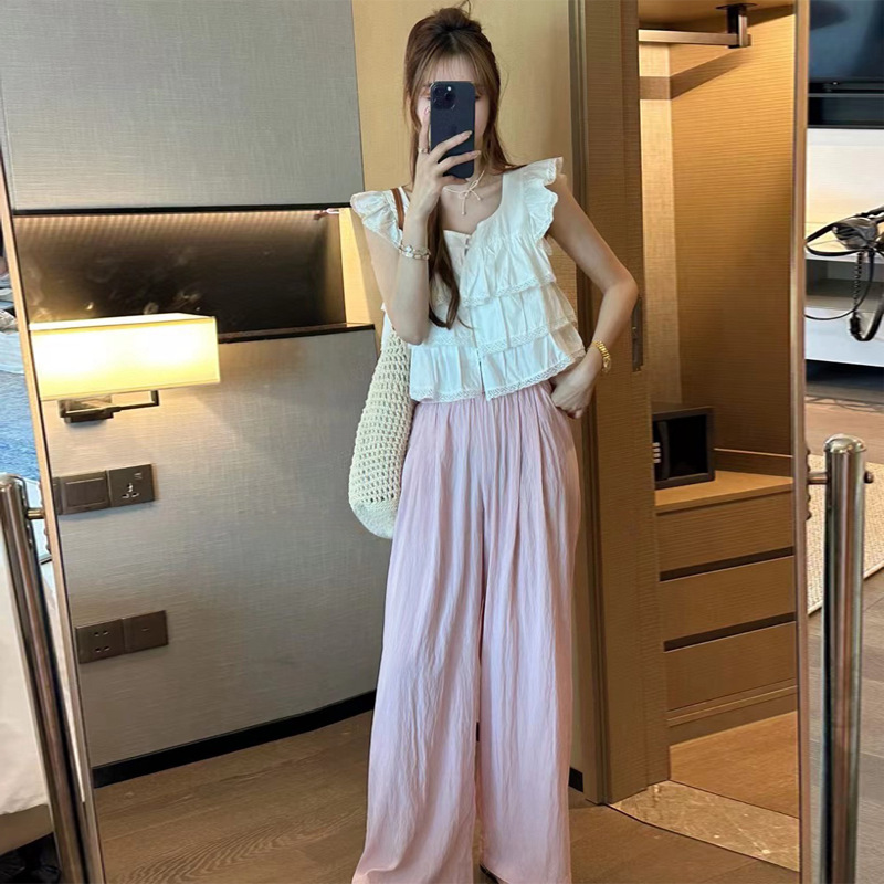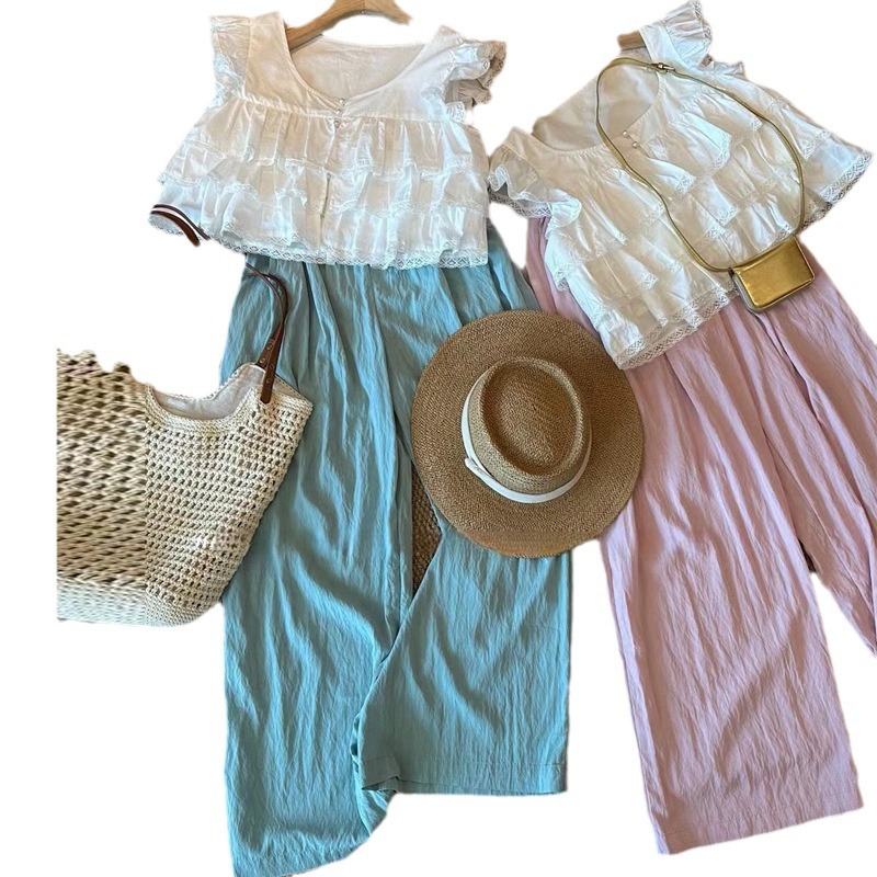 | nameOriginal | 2024 Summer New Sweet Age-Reducing Layer-by-Layer Cake Flying Sleeve White Shirt Casual Pants Two-Piece Suit for Women |