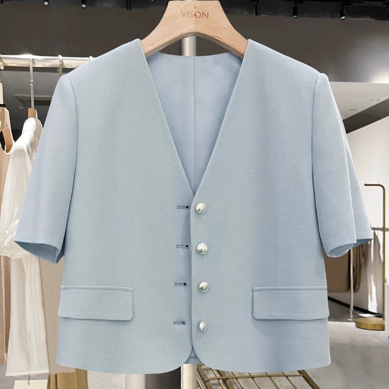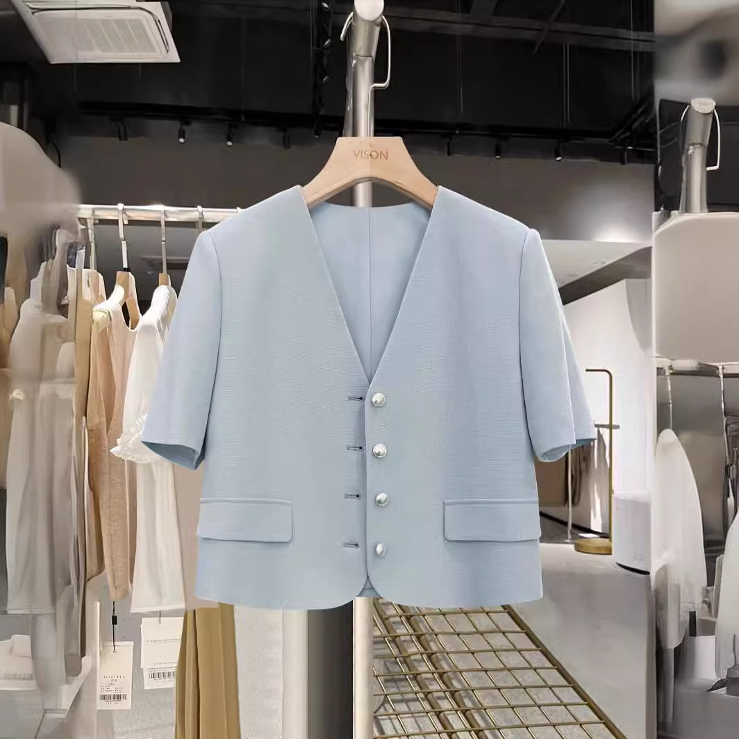 2024 Summer new thin blue short suit jacket women's net red light mature Chanel style western style salt suit