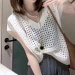 | nameOriginal | 2024 Summer new thin hollow V-neck knitted blouse Vest Women's top |