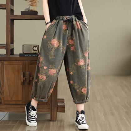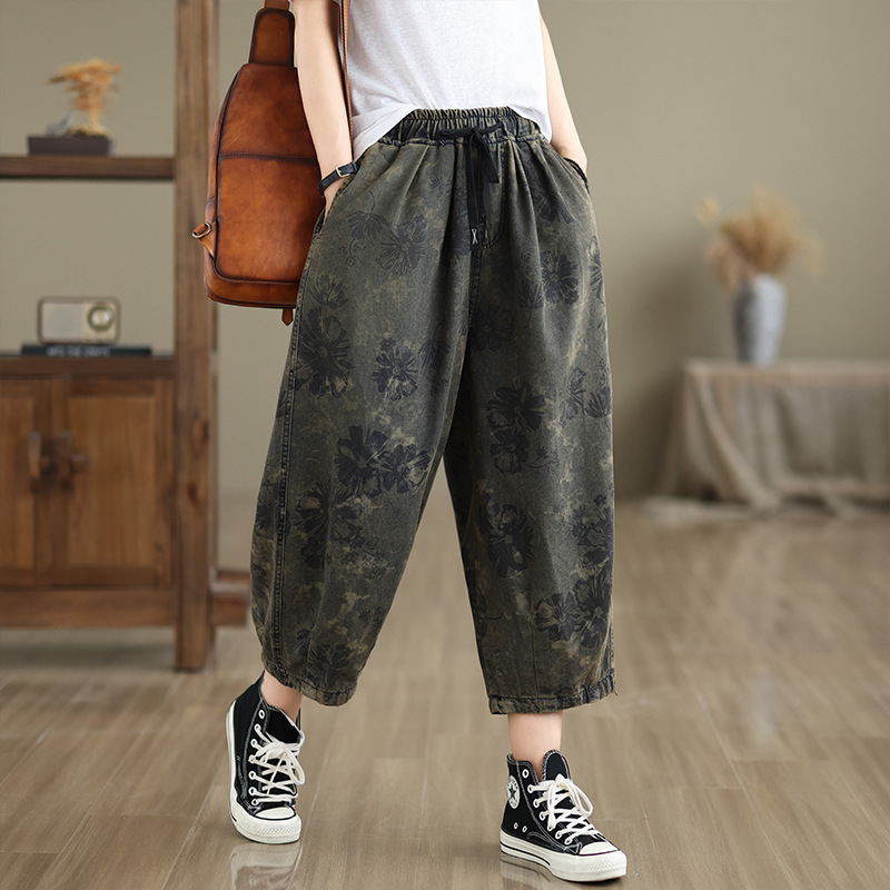 | nameOriginal | 2024 Summer New Thin plus size Women's Loose Vintage Printed Jeans Women's Cropped Torre Harem Pants |