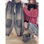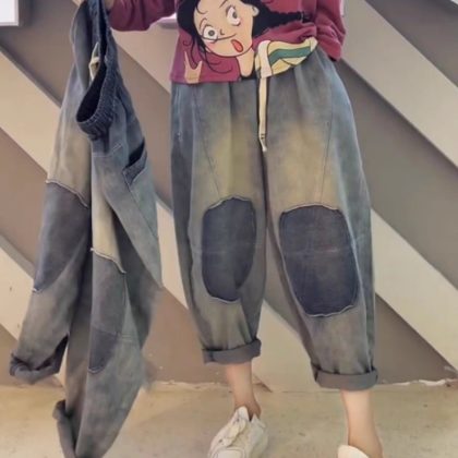 | nameOriginal | 2024 summer new vintage casual jeans women's elastic waist plus size patch loose harem pants 89 |