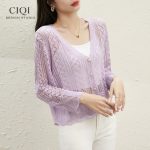 2024 Summer New Women's Short Loose Knitted Cardigan Long-sleeved Thin Hollow Sunscreen Shirt