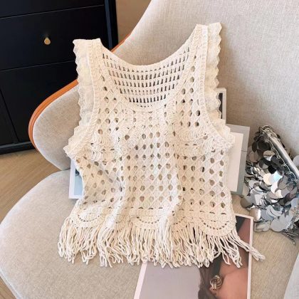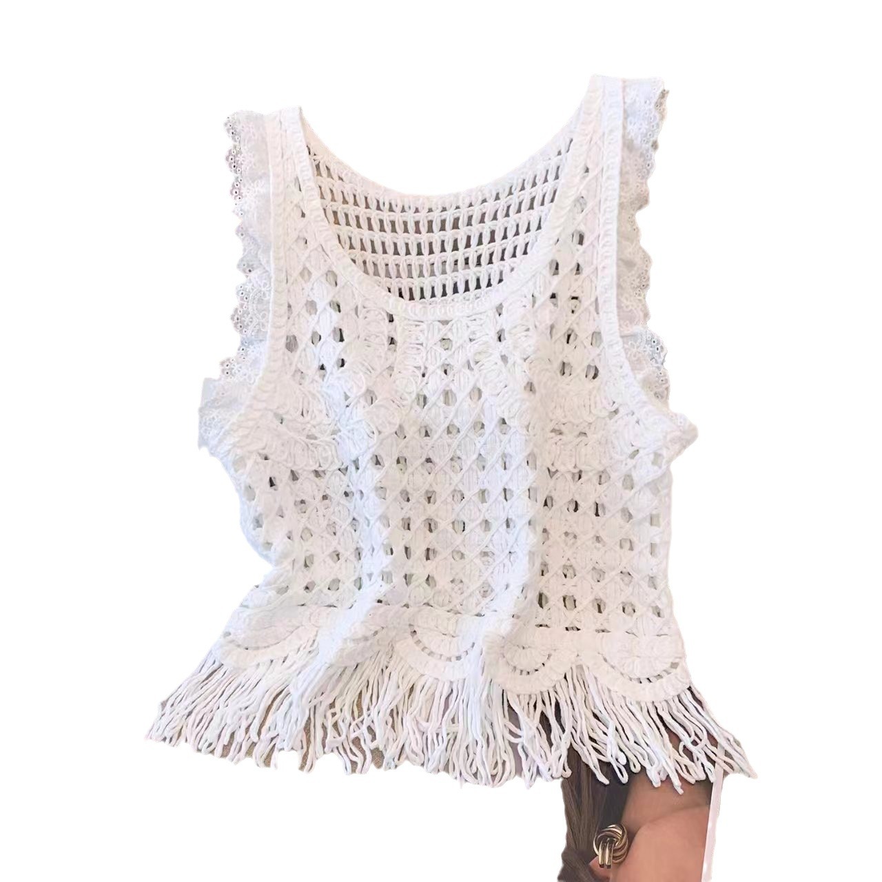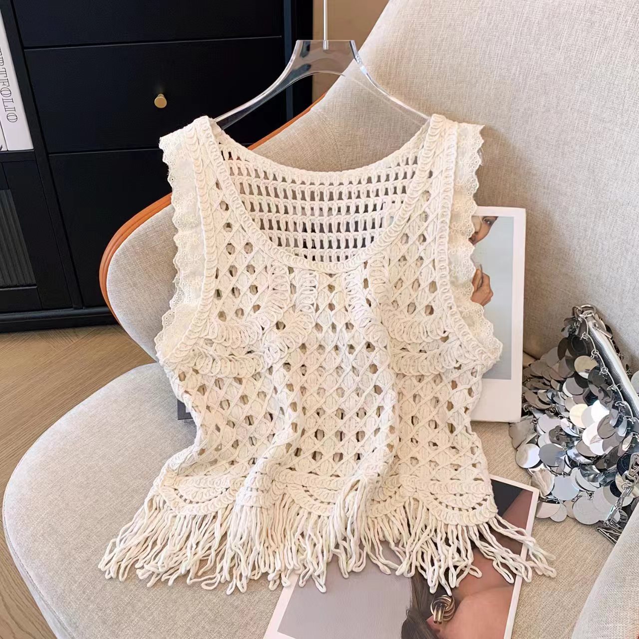 | nameOriginal | 2024 Summer Niche Design Personalized All-match Outer Wearing Knitted Hollow Short Tassel Sleeveless Vest Top |