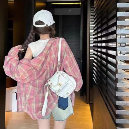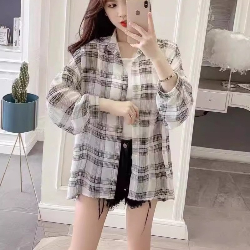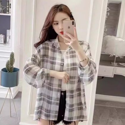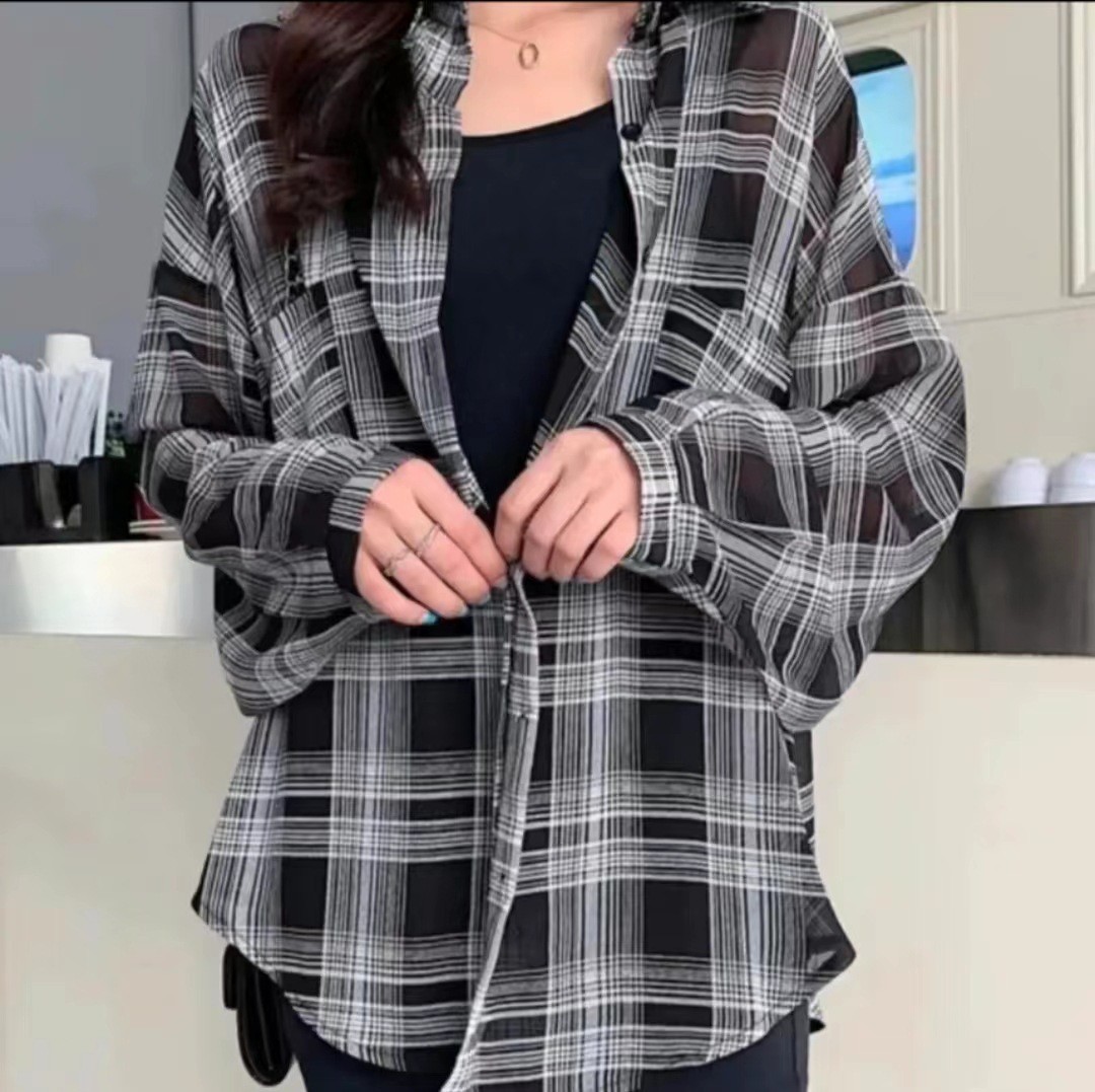 | nameOriginal | 2024 Summer Plaid Shirt Sunscreen Coat Thin Air Conditioning Cardigan Casual plus size Tencel Top Women's T-Shirt |