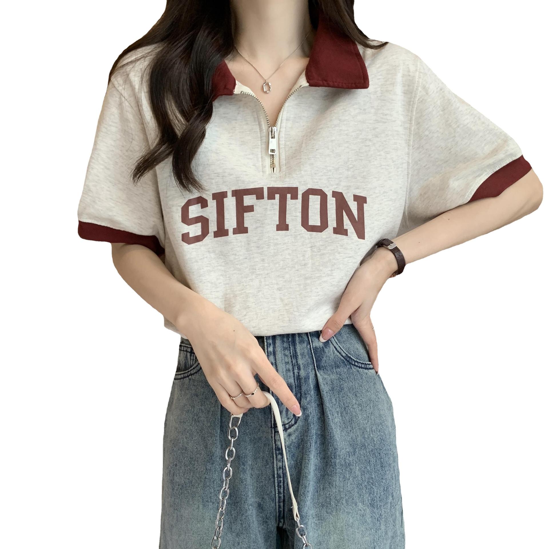 | nameOriginal | 2024 Summer Short-sleeved Shoulder T-shirt Women's New Zipper Polo Collar Western Style Short Top T-shirt |