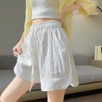 | nameOriginal | 2024 Summer Thin Imitation Cotton Split White Shorts Women's High Waist Loose All-match Drawstring Wide Leg Sports Casual Pants |