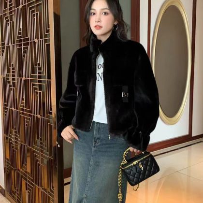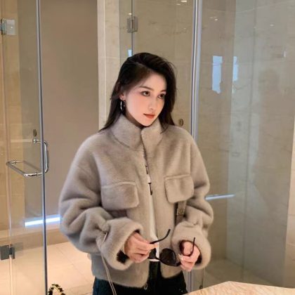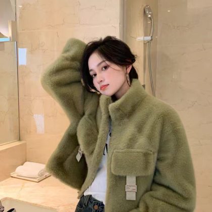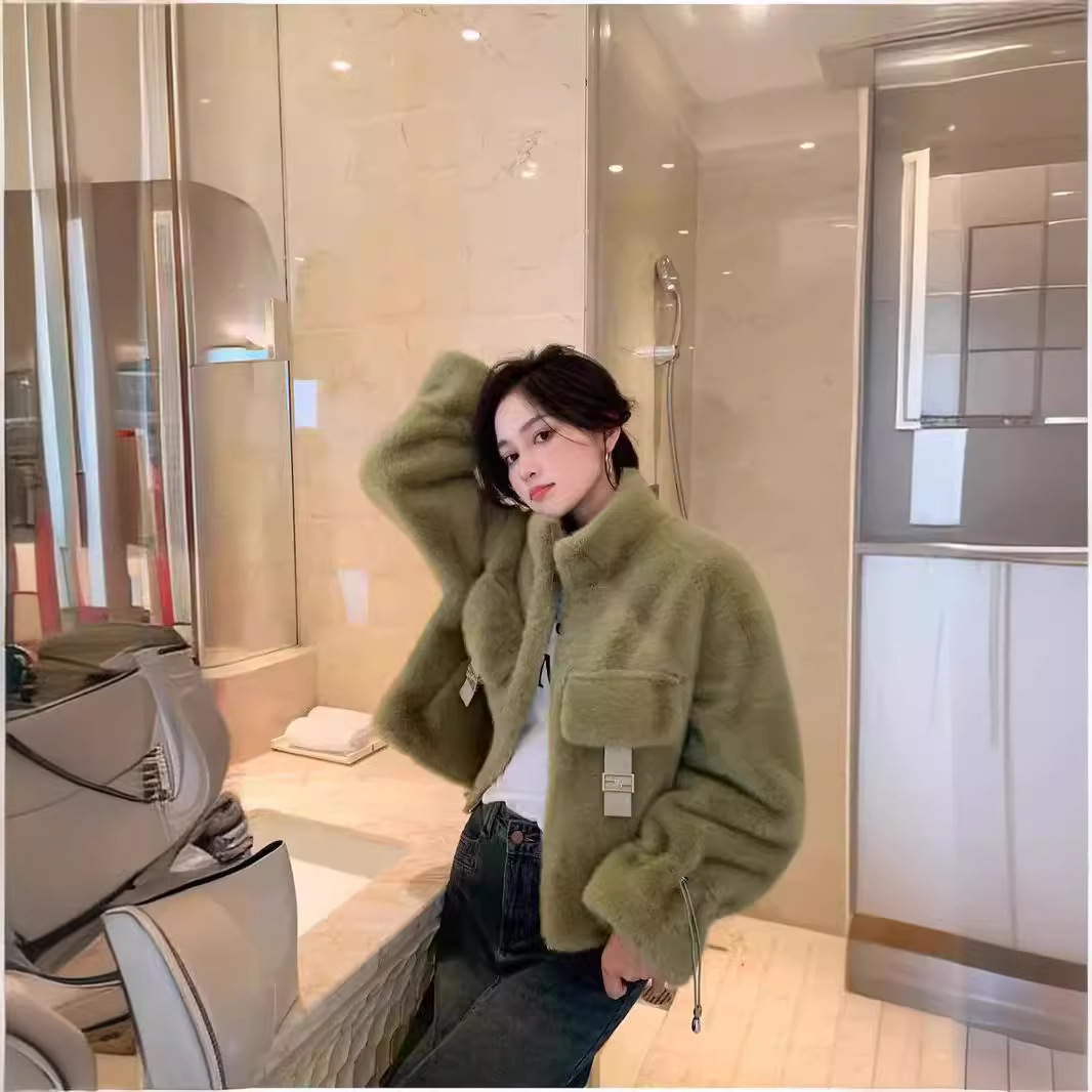 | nameOriginal | 2024 winter new imitation fur one green mink whole mink fur coat women's short fur coat for small people |
