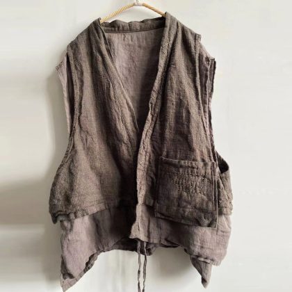 21/2 heavy linen spring and autumn thin double-layer outer short inner long lace-up fake two-piece stitching vest
