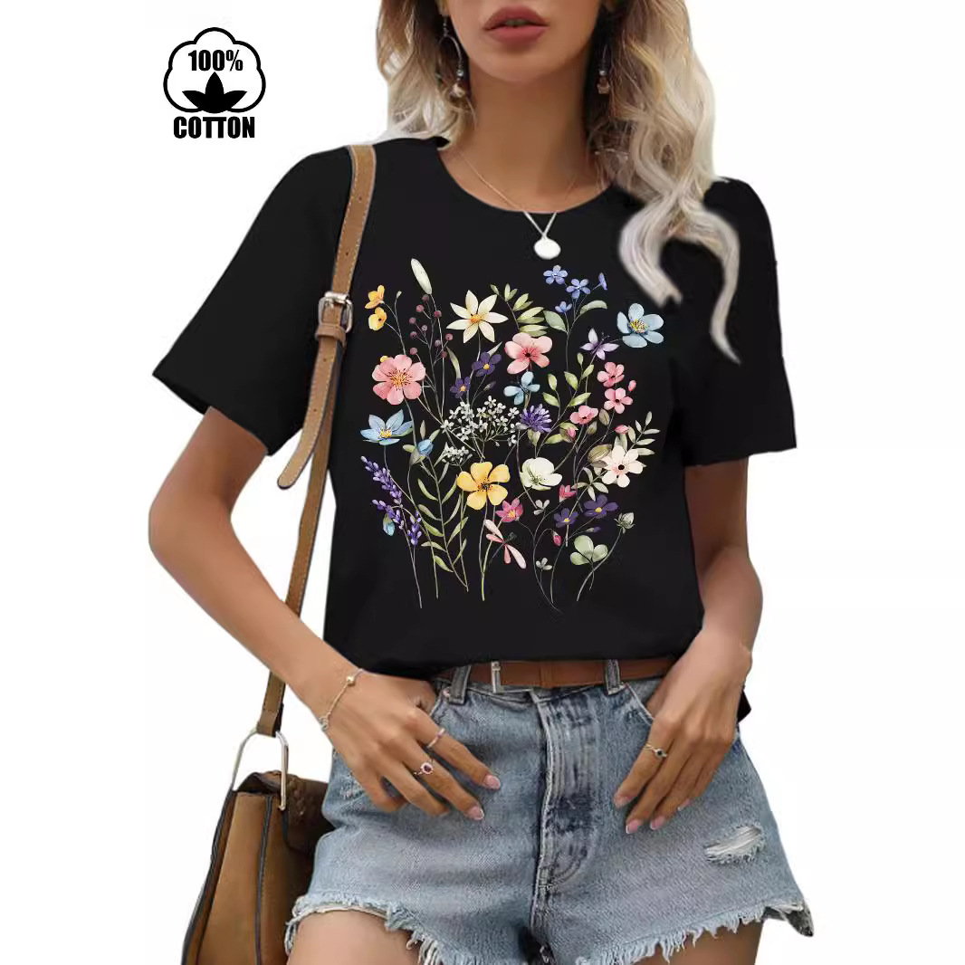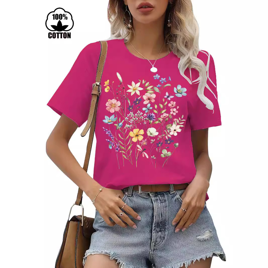 | nameOriginal | 220g cotton Amazon independent station short sleeve round neck Europe and the United States cross-border flower printed t-shirt cross-border e-commerce women |