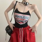 2262# American Spice Girls Invisible Shoulder Strap Printed Camisole Slimming Short Sleeveless Tight Top with Chest Pad