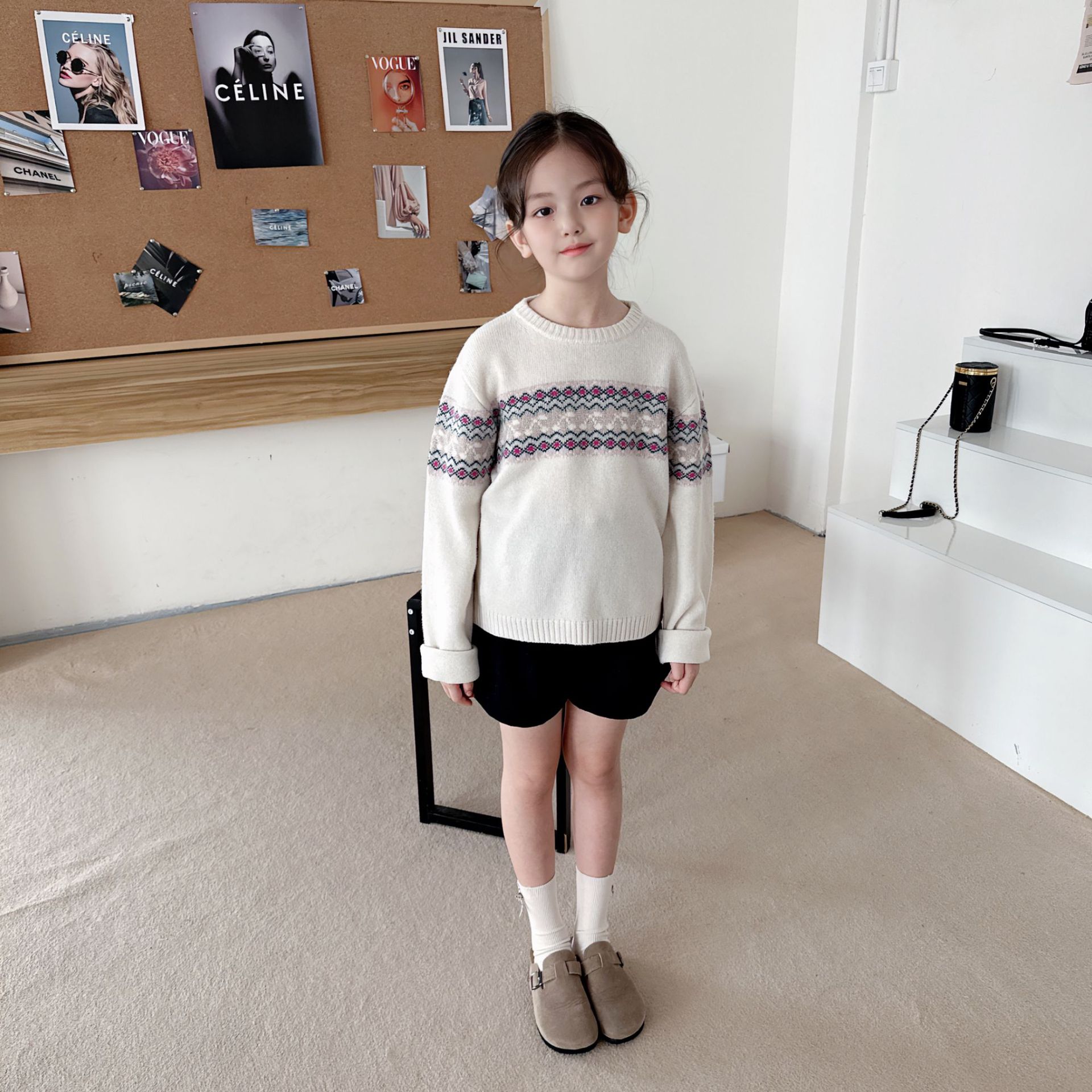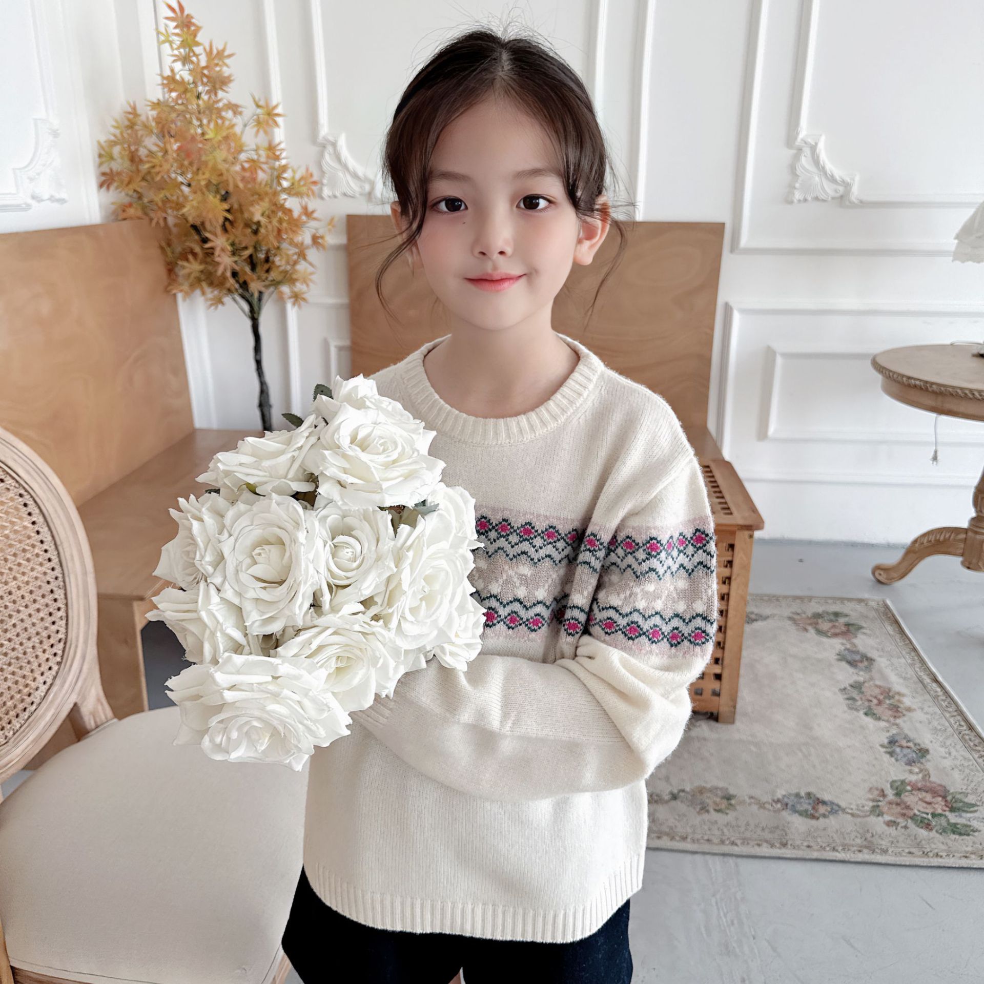 | nameOriginal | 23 autumn and winter girls' all-wool Cherry jacquard sweater round neck thickened warm pullover sweater sweater top |