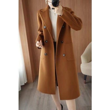 23 معطف خريف وشتاء جديد من الكشمير على الوجهين معطف صوفي أنيق متوسط ​​الطول للسيدات على الطراز الكوري