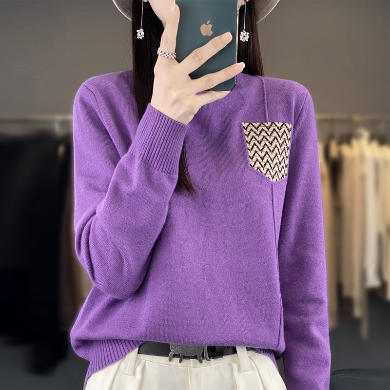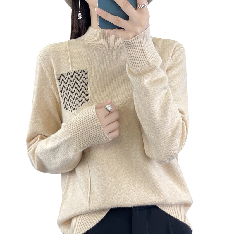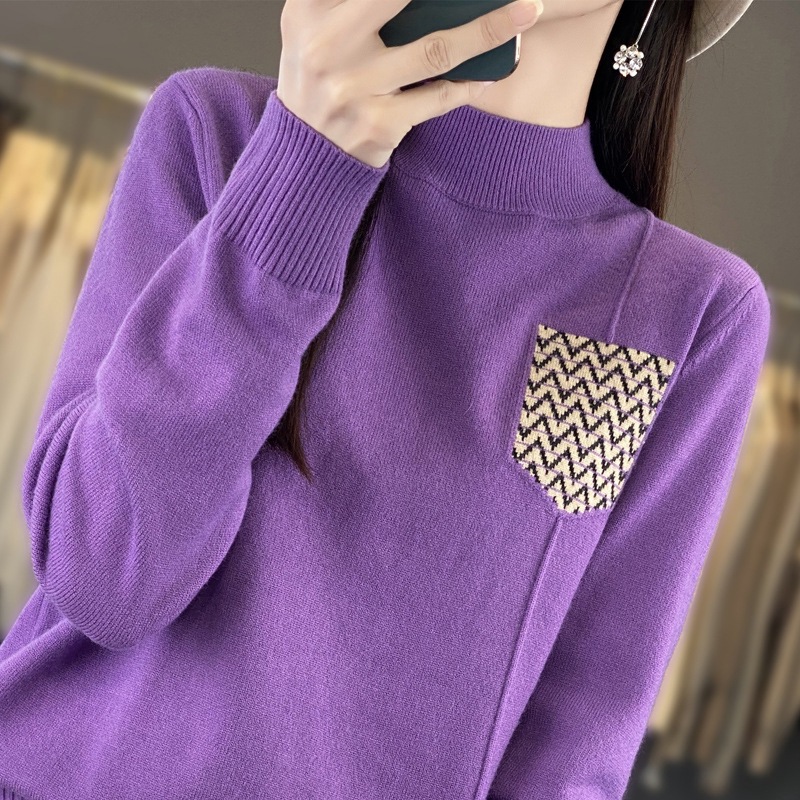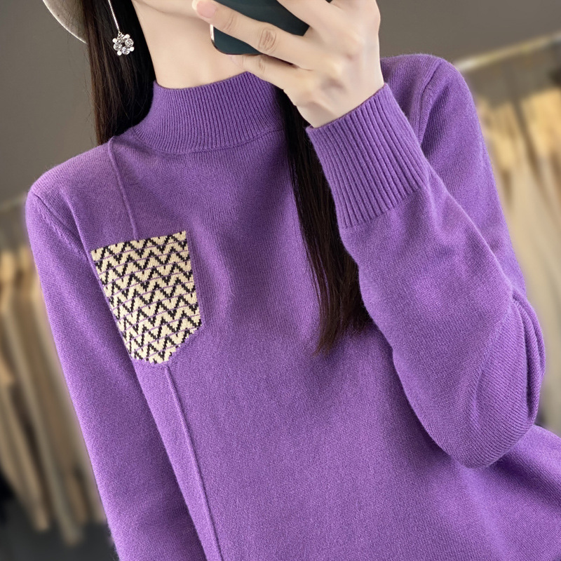 | nameOriginal | 23 autumn and winter new long-sleeved sweater women's half turtleneck fashion fake pocket color matching loose young Korean style knitted bottoming shirt |