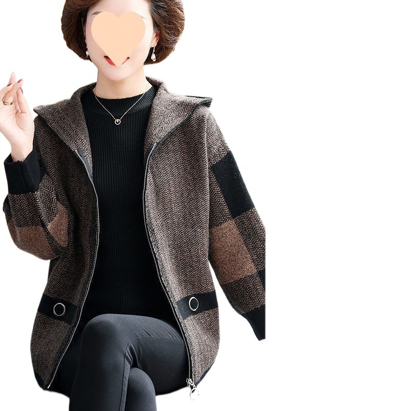 23 new mother spring and autumn clothes foreign style clothes middle-aged women's cardigan middle-aged and elderly hooded coat 40 years old 50
