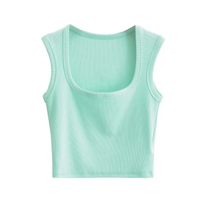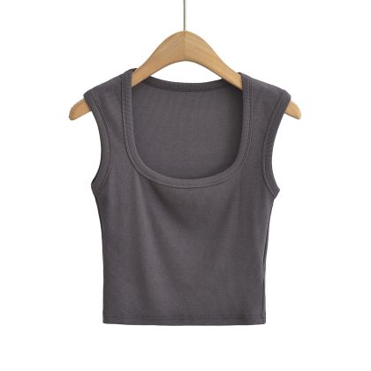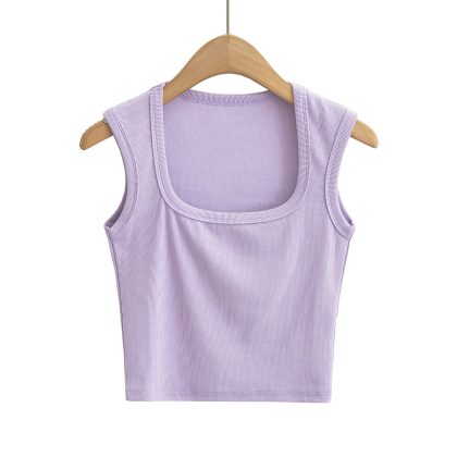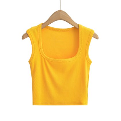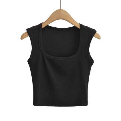 23 Summer New Women's Sexy Spice Girl Thin Thread Slim-Fit Sexy Big Square Collar Wide Shoulder Sleeveless Short Small Vest