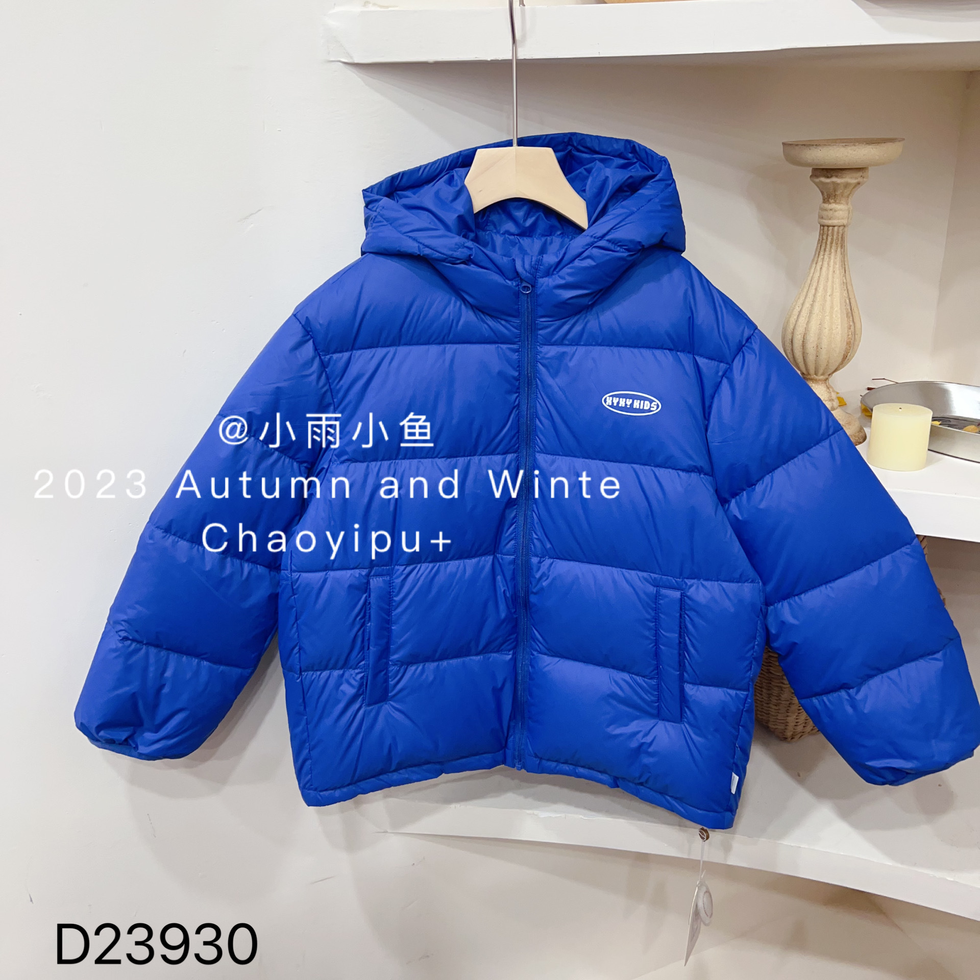| nameOriginal | 23 Winter welfare distribution light rain fish rainbow color letter logo hooded zipper white duck down long sleeve coat |
