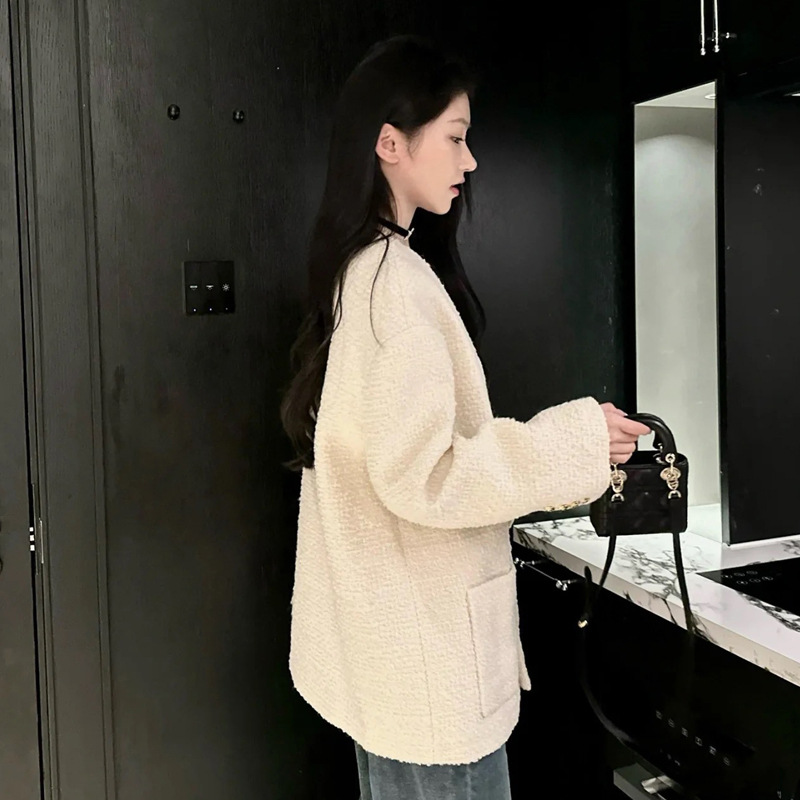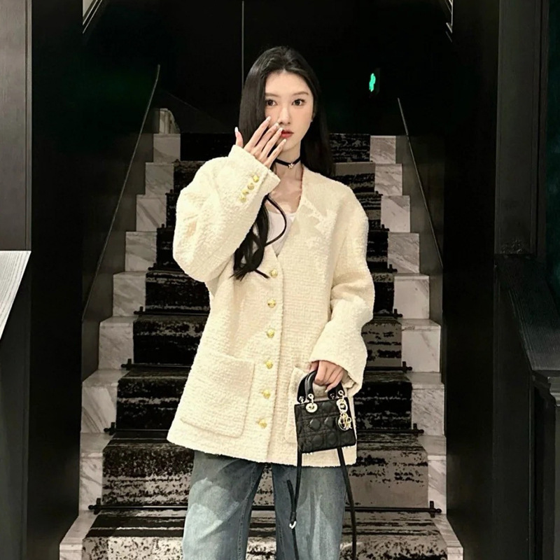 | nameOriginal | 24 early spring V-neck fashionable milky white cashmere loose lazy simple casual all-match thick wool coat for women |
