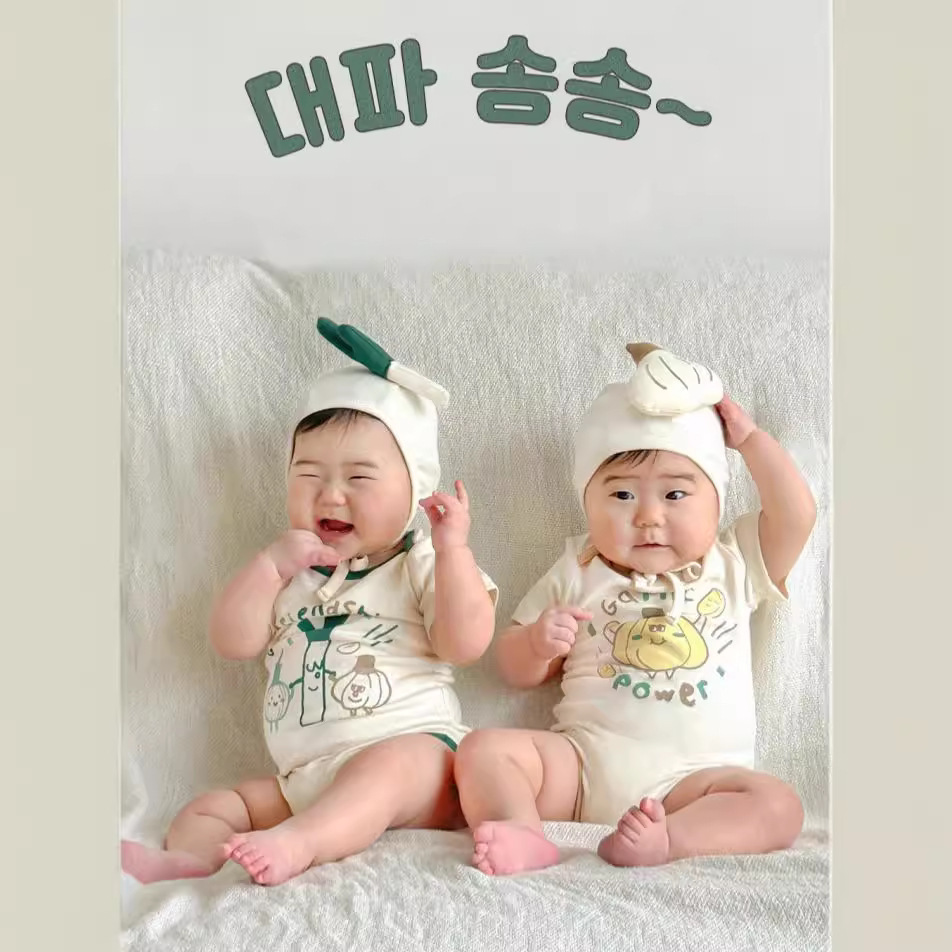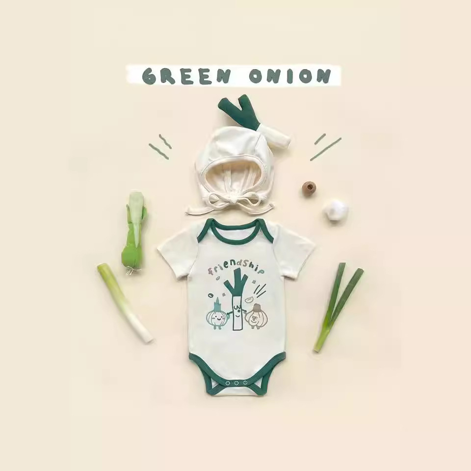 24 بذلة أطفال صيفية جديدة النسخة الكورية من تصميم الطباعة بالبصل الأخضر حقيبة أطفال بأكمام قصيرة ملابس ضرطة