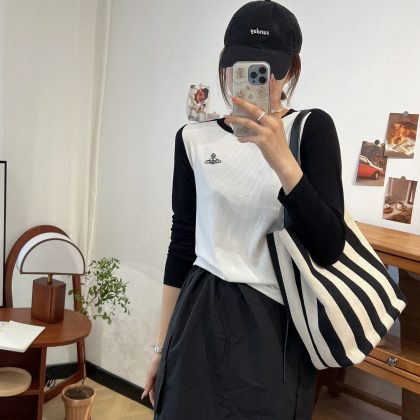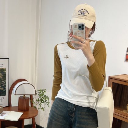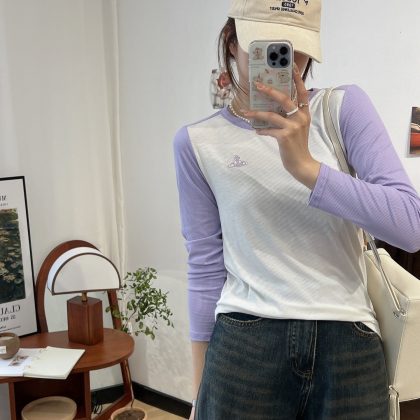 | nameOriginal | 24 New Women's Saturn Embroidered Colorblock Raglan Sleeve Base Shirt Loose All-match Slim-fit Long Sleeve T-shirt Top |