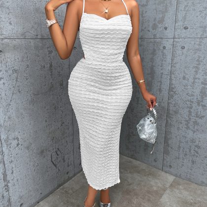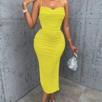 24 summer fashion sexy style European and American women's clothing independent station new solid color collar strap backless dress