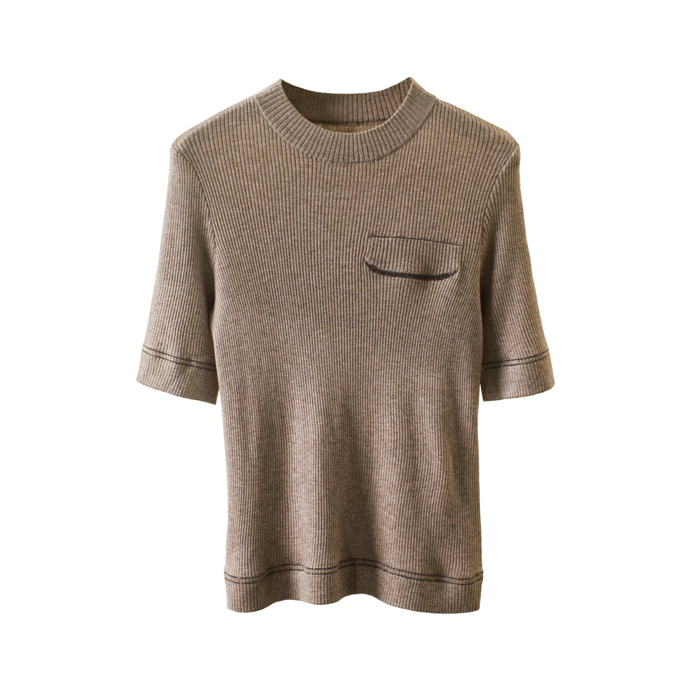 | nameOriginal | 24 Summer New BC Worsted Wool Top Round Neck Pullover Fake Pocket Soft Waxy Skin-Friendly Bead Chain Knitted Short-Sleeved Women |