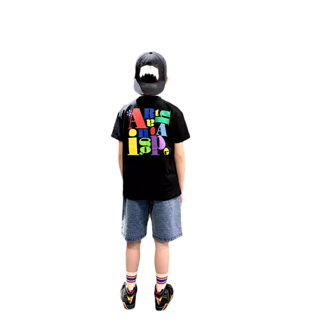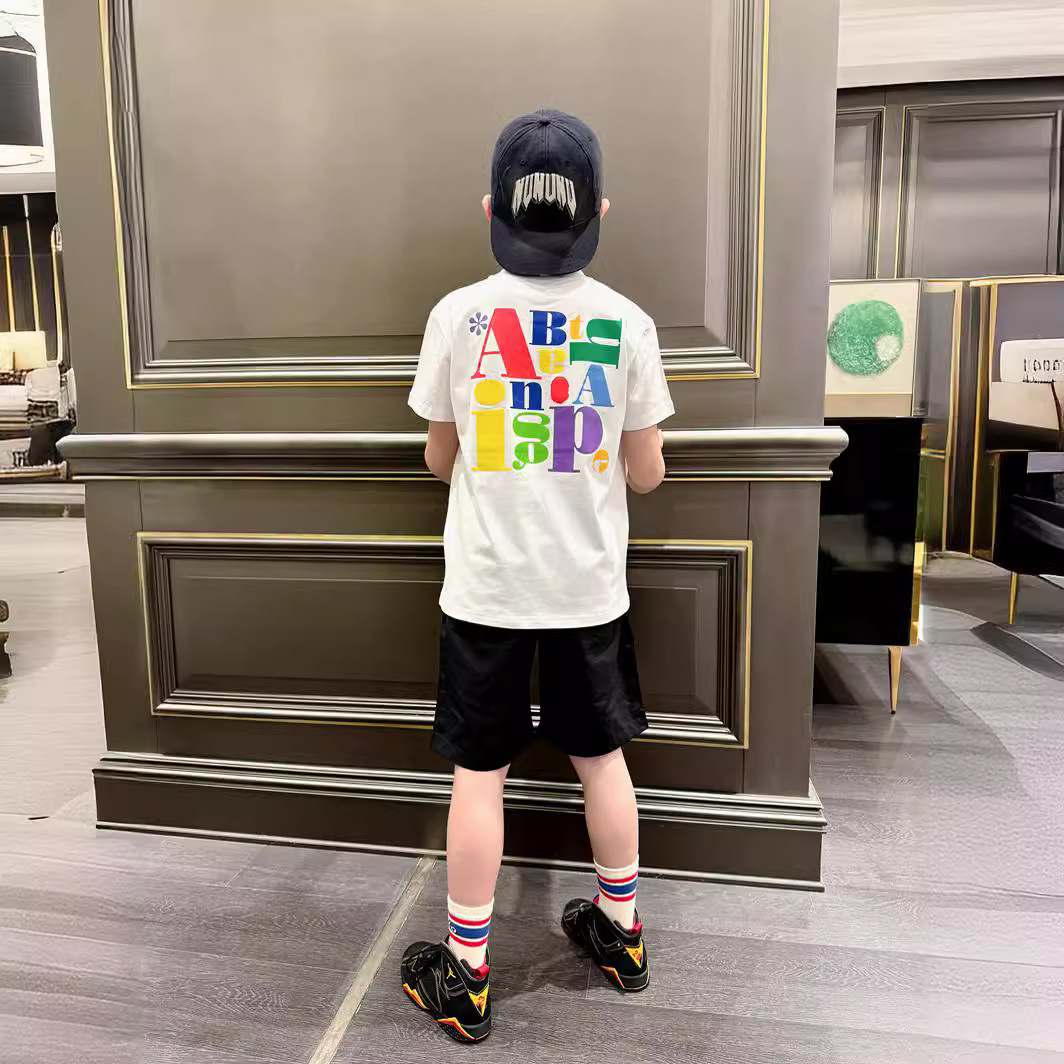 | nameOriginal | 24 summer tide brand children's clothing boys big children's short sleeve jacket back color letter printed children's T-shirt S610 |