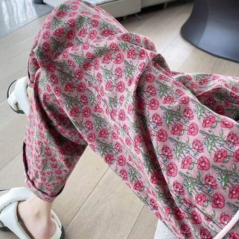 | nameOriginal | 250 Jin Home Pants Floral Wide-leg Pajama Pants Women's High Waist Loose Nine-point Size Slim Casual Pants |