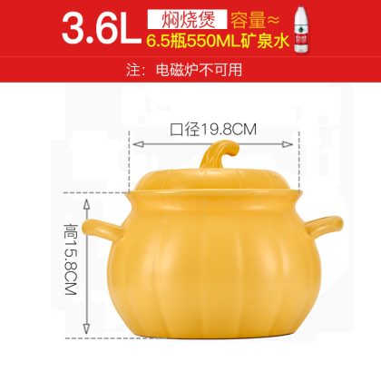 | nameOriginal | 26X8 pumpkin casserole pot household gas ceramic pot stew pot soup pot open fire non-cracking casserole high temperature resistant stew pot |