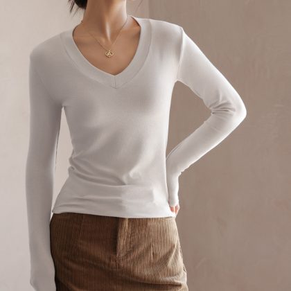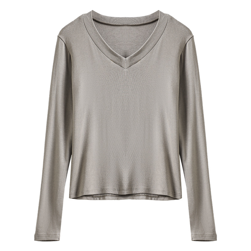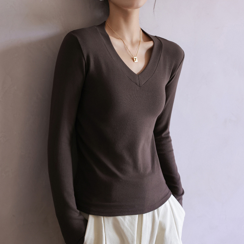 | nameOriginal | 280g thread V-neck versatile solid color bottoming shirt women's autumn slim fit slimming inner top long sleeve T-shirt bottoming shirt |