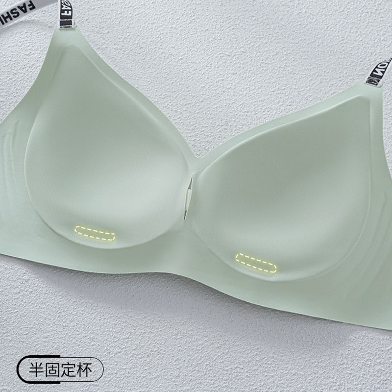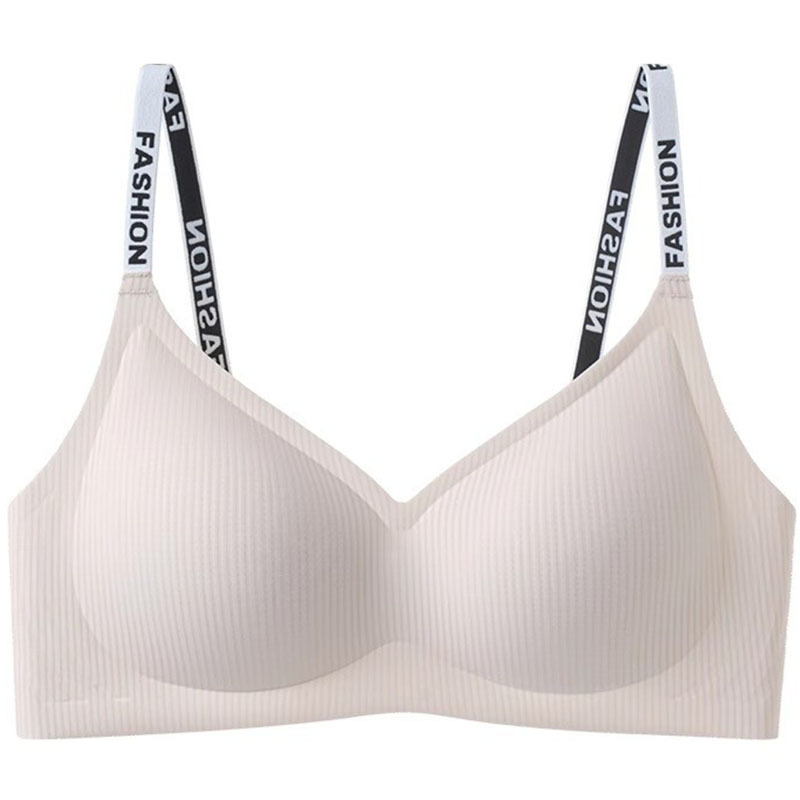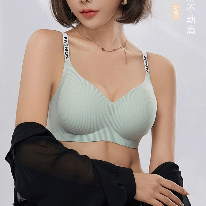 295# Letter Shoulder Strap Fashionable Traceless Underwear Naked Sense Comfortable Soft Support Semi-fixed Cup Bra New Style