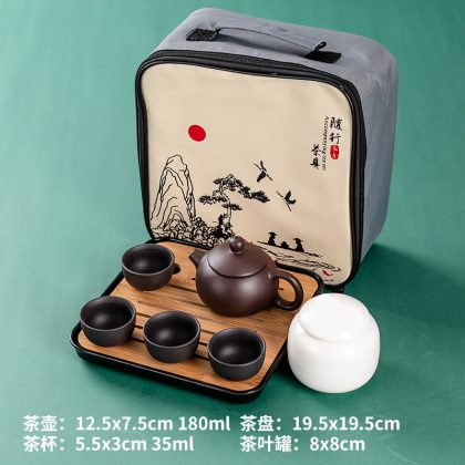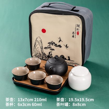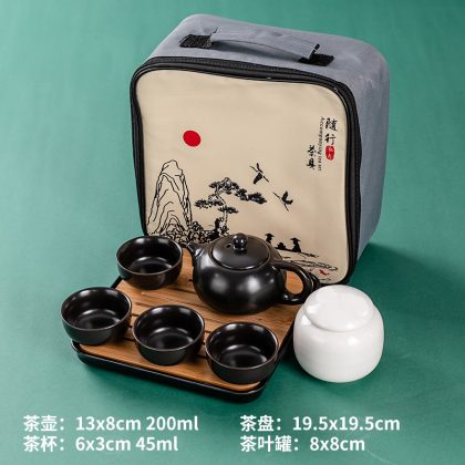 | nameOriginal | 2TCU Japanese kung fu travel tea set suit portable bag teapot outdoor black ceramic suit tea art one pot four Cups |