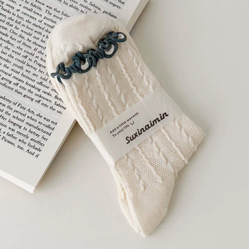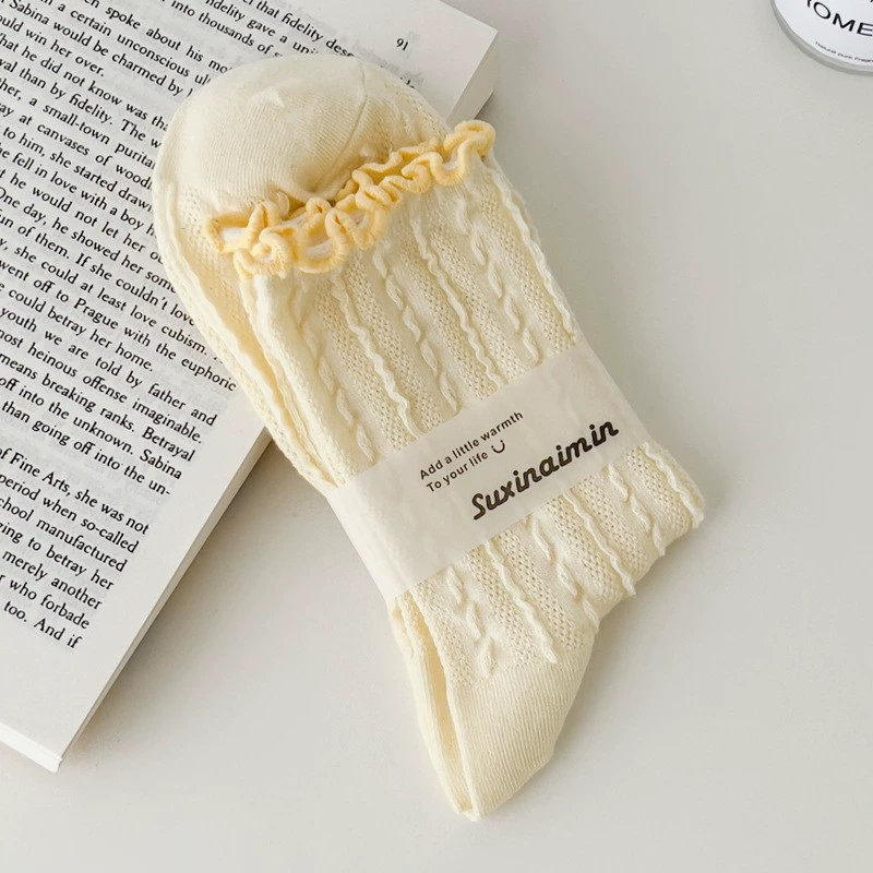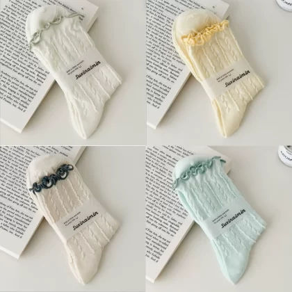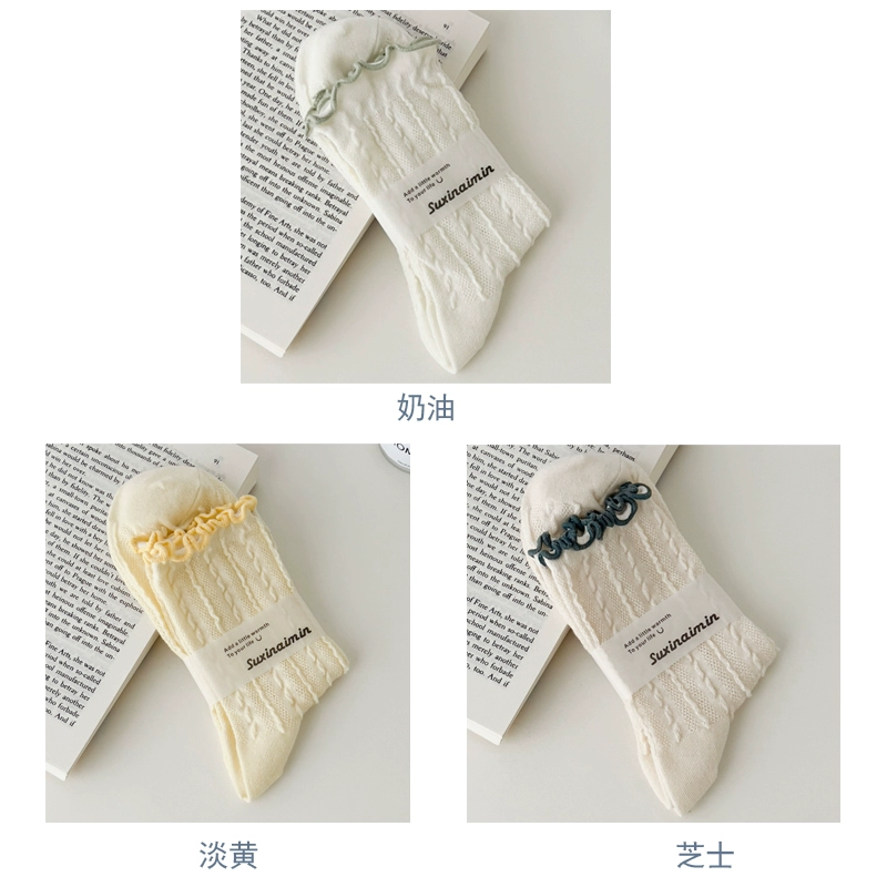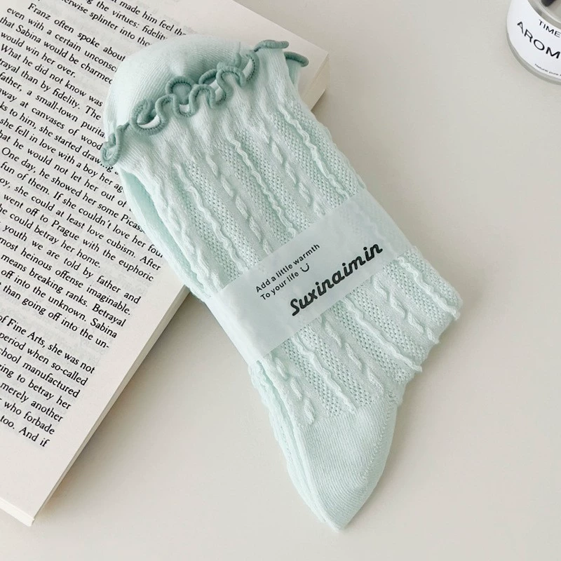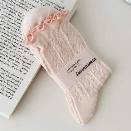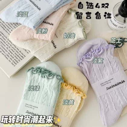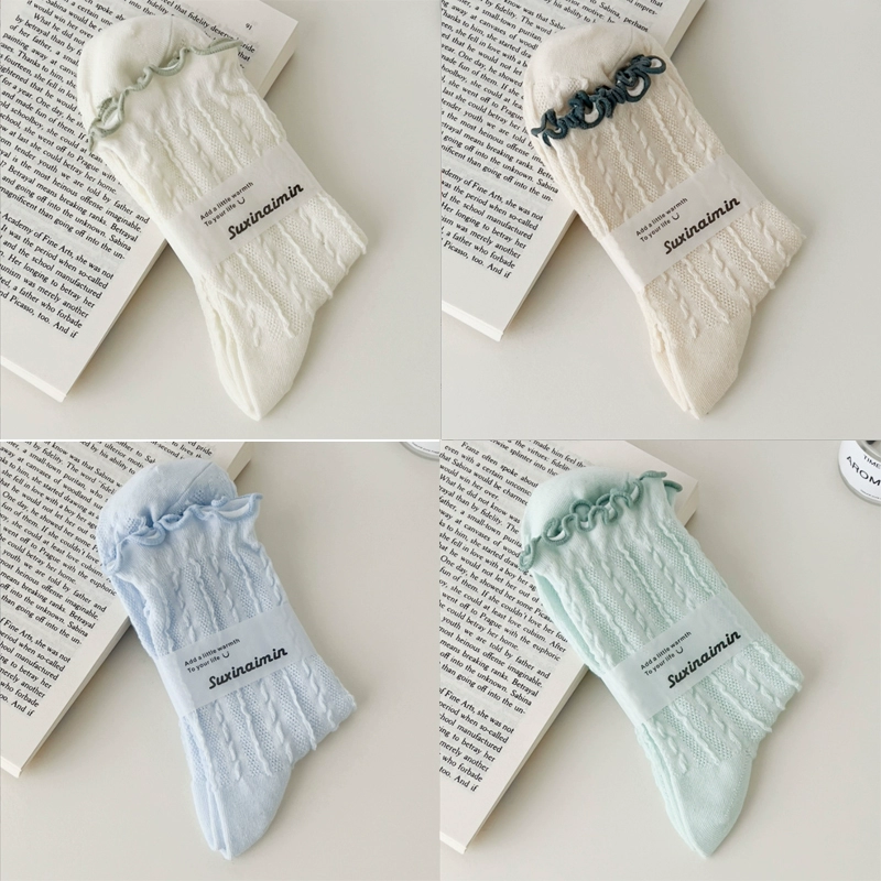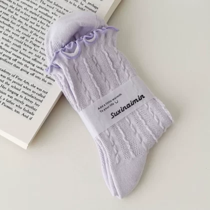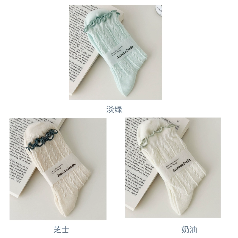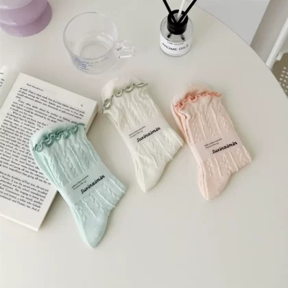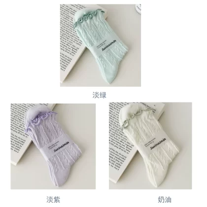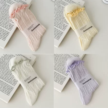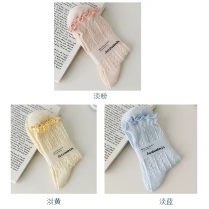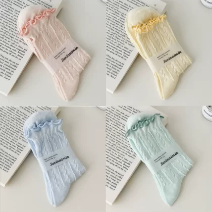 3 pairs of sweet fungus-edged breathable mesh socks for women