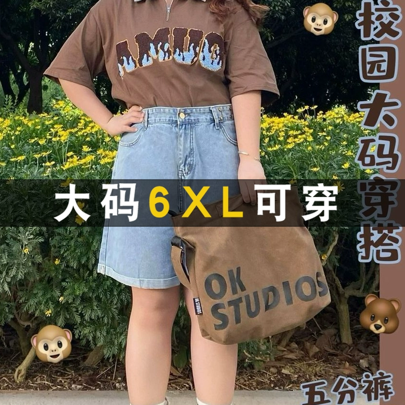 300 Catties ذات الحجم الكبير من الدهون MM عالية -سراويل القصيرة الدنيم نساء الصيف النسخة الكورية فضفاضة ورقيقة مستقيمة على التوالي