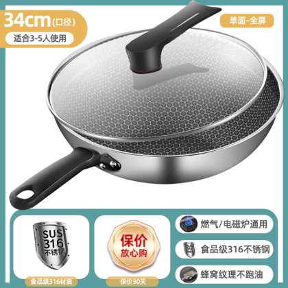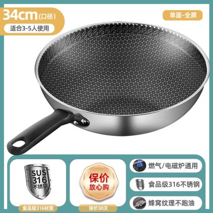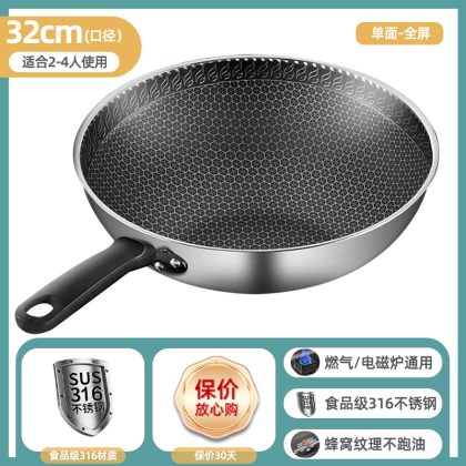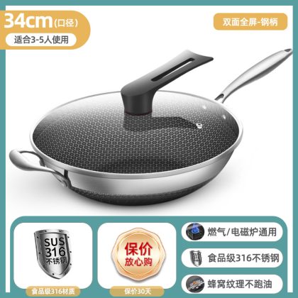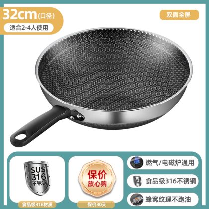316 stainless steel wok non-coated non-stick pan flat bottom double-sided screen wok non-lampblack induction cooker gas universal