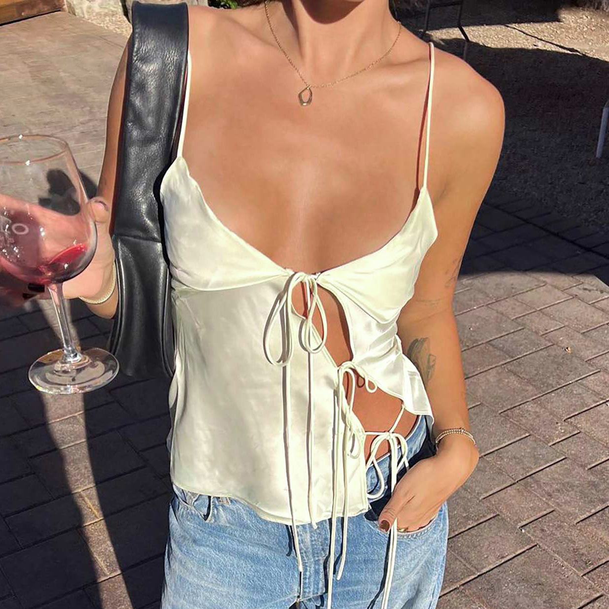 31689THY Amazon popular 2024 Summer new lace-up sleeveless hollow backless European and American strap top for women