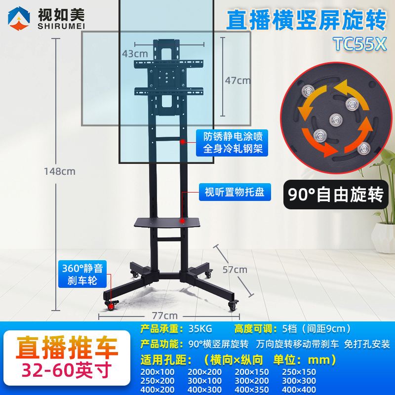 32-55 inch Rotating Horizontal and Vertical Screen TV Bracket Floor-Standing Movable Cart Punch-Free Hanger Direct Broadcasting Machine Bracket