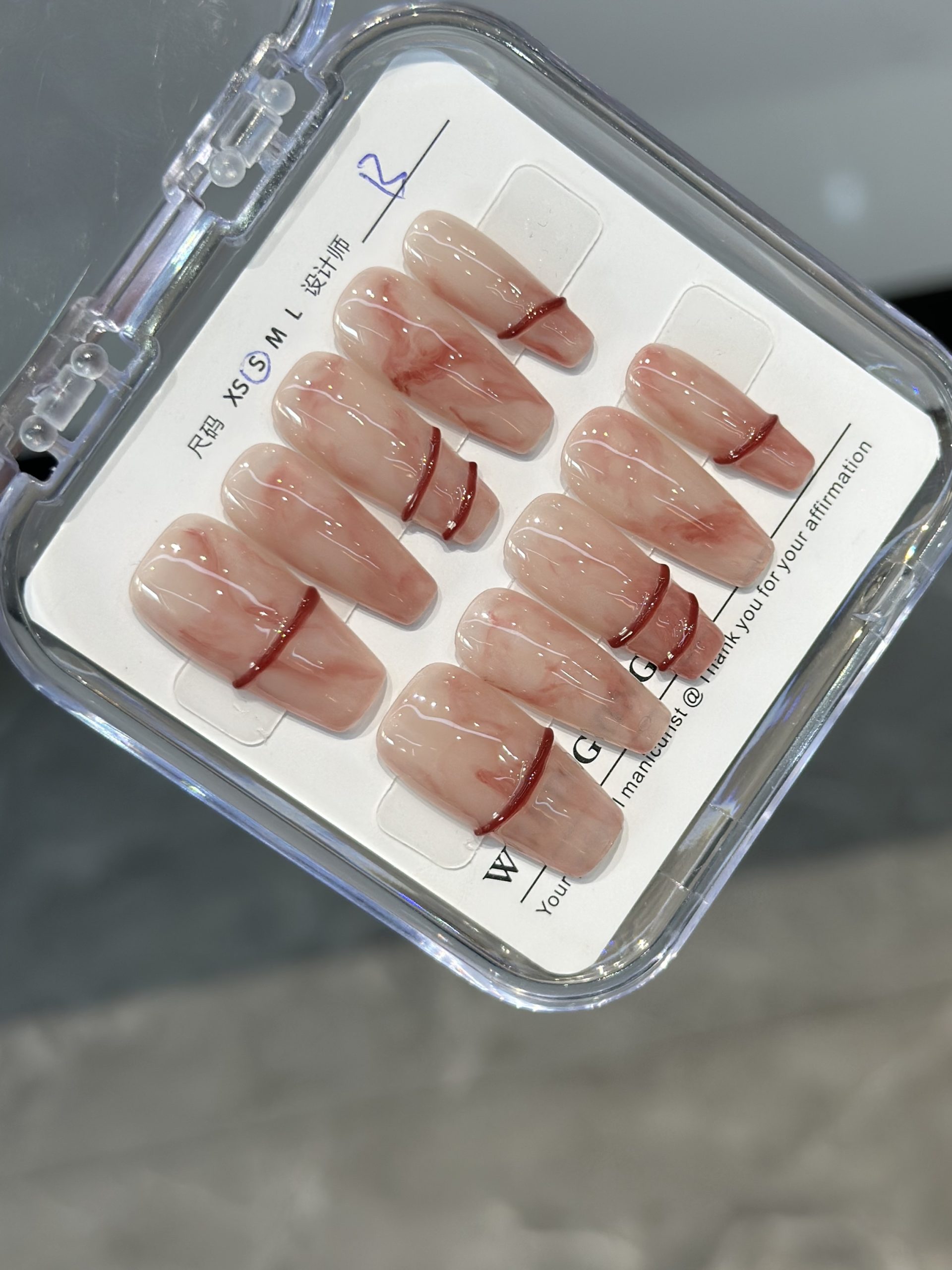 | nameOriginal | 325 fake nail handmade custom finished product wear pure red sandalwood wrapping white nail patch can be detached pregnant women bride |