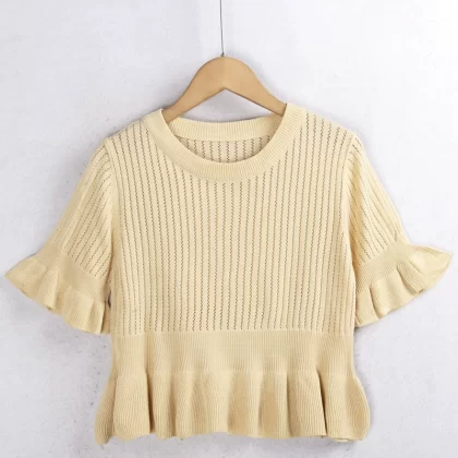 | nameOriginal | 3307 Hollow Knitted Sweater Spring New Style Round Neck Ruffled Short Fashionable High Elastic Small Shirt Women's Foreign Trade |