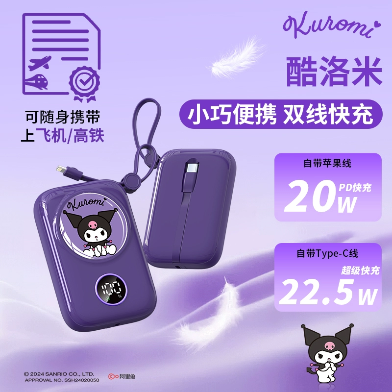 | nameOriginal | [3C certification] 2024 new Sanrio Kuromi 20000 mAh power bank comes with a 10,000 line cable, ultra-thin, compact, portable, mini cute, super large capacity, suitable for iPhone 15 |