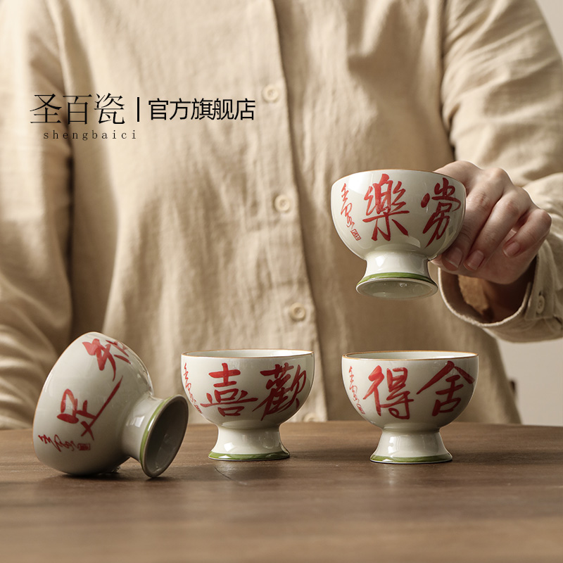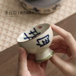 nameOriginal | 3IGP grass and wood gray underglaze handwriting antique high-legged Master Cup Tea Cup high-legged hand-painted personal cup small |