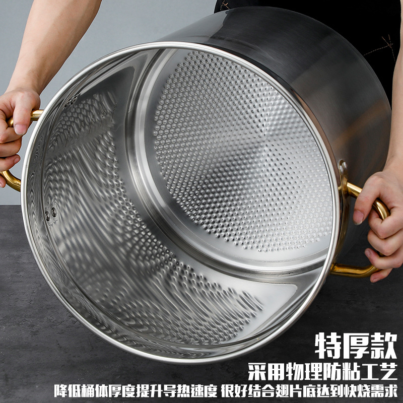 3OBR fin energy-saving soup bucket commercial stainless steel bucket with lid large capacity thickened double bottom bucket braised meat soup pot braised