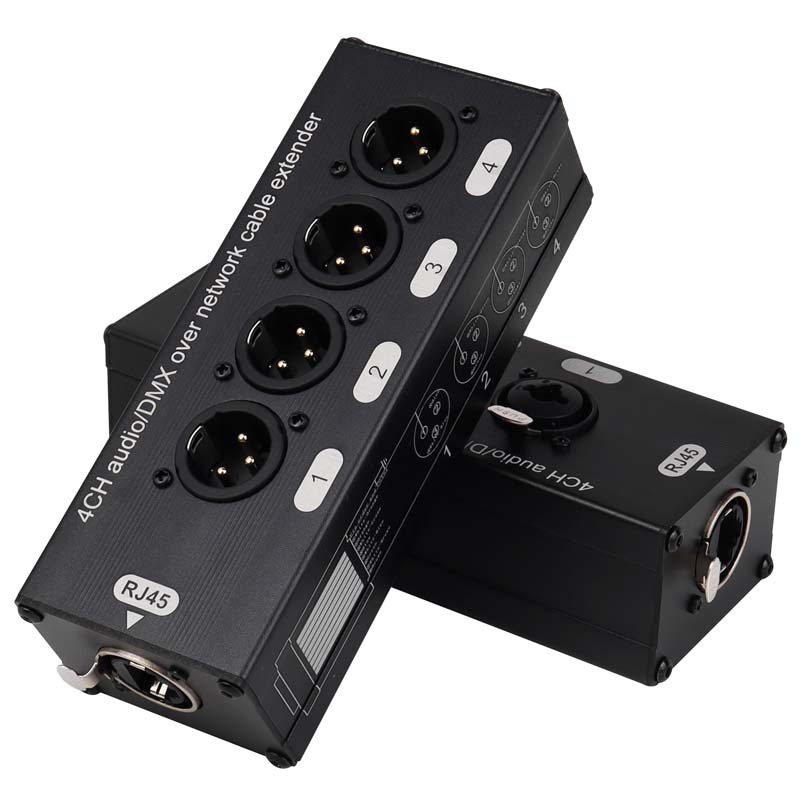 | nameOriginal | 4-way XLR carnong audio transmitter to network cable extender with isolator common ground interference isolation 300 m |